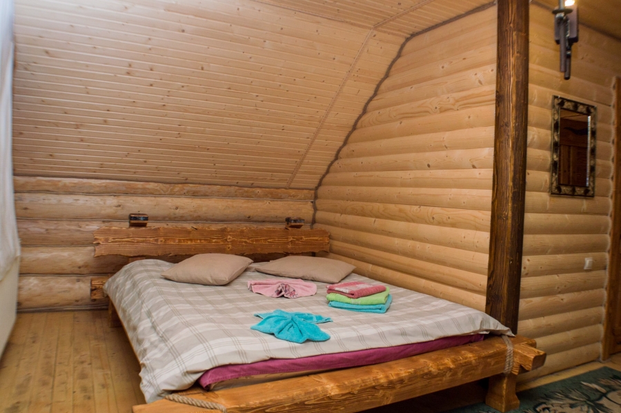 №1-б Люкс сімейний - двокімнатний номер розрахований на шістьох осіб, які бажають спокійного та комфортного відпочинку та знаходиться на другому поверсі комплексу. Номер оснащений дерев’яними меблями ручної роботи. Санвузол містить душову кабіну, умивальник, туалет.